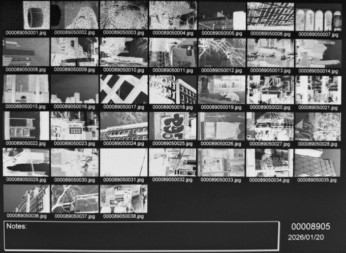 In film photogrpahy, a contact sheet is a print that shows every frame of the